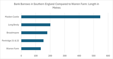 Figure 6: Comparison of the length of Warren Farm long barrow with bank barrows in Dorset