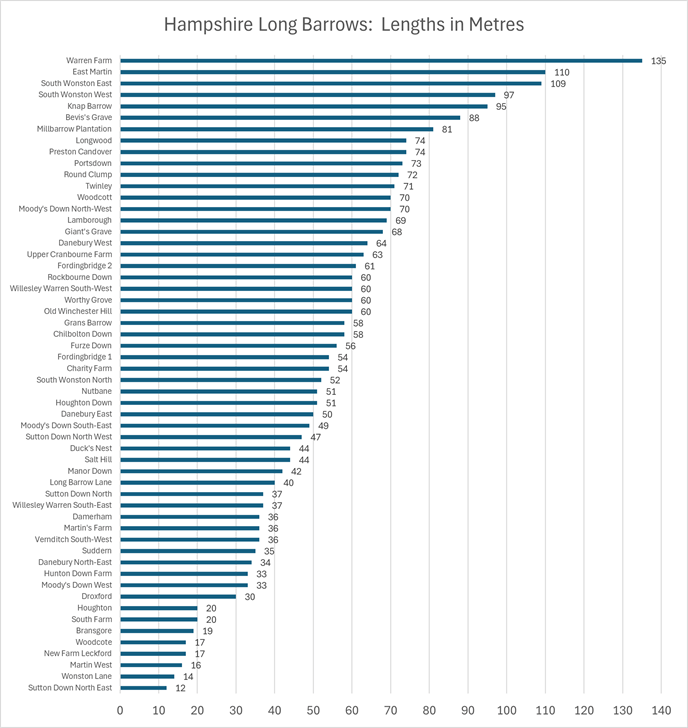 Figure 4: Comparison of the lengths of long barrows in Hampshire