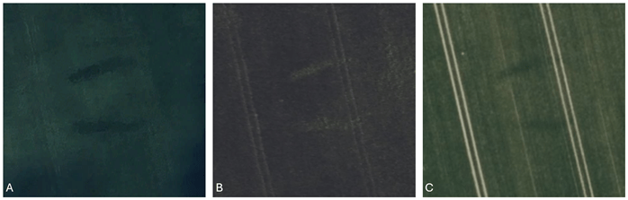 The argument that these ditches are archaeological rather than agricultural in nature is bolstered by the fact the cropmarks appear on aerial images from different years, as show in Figure 3. In each case, cropmarks of very similar character are present.